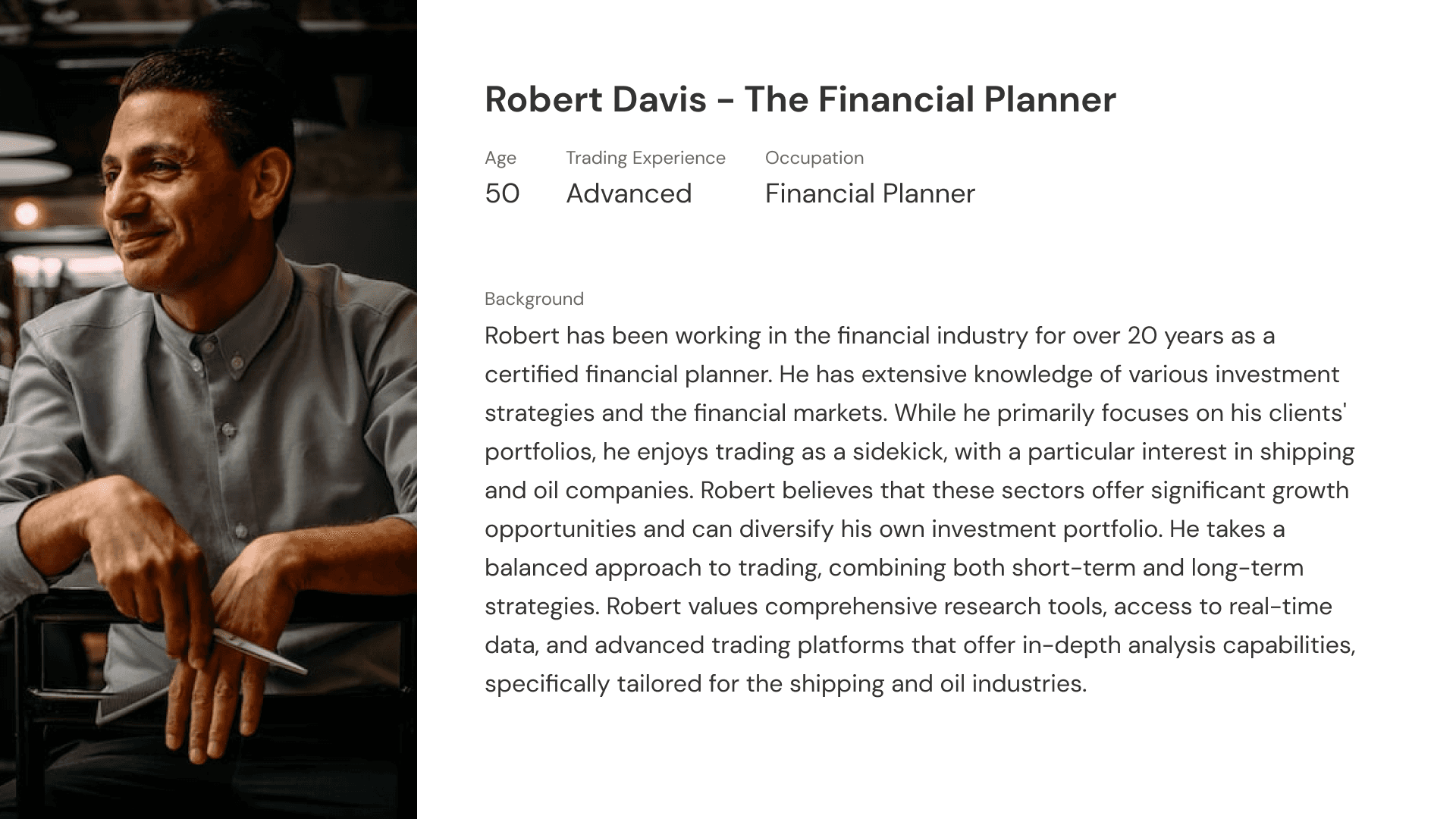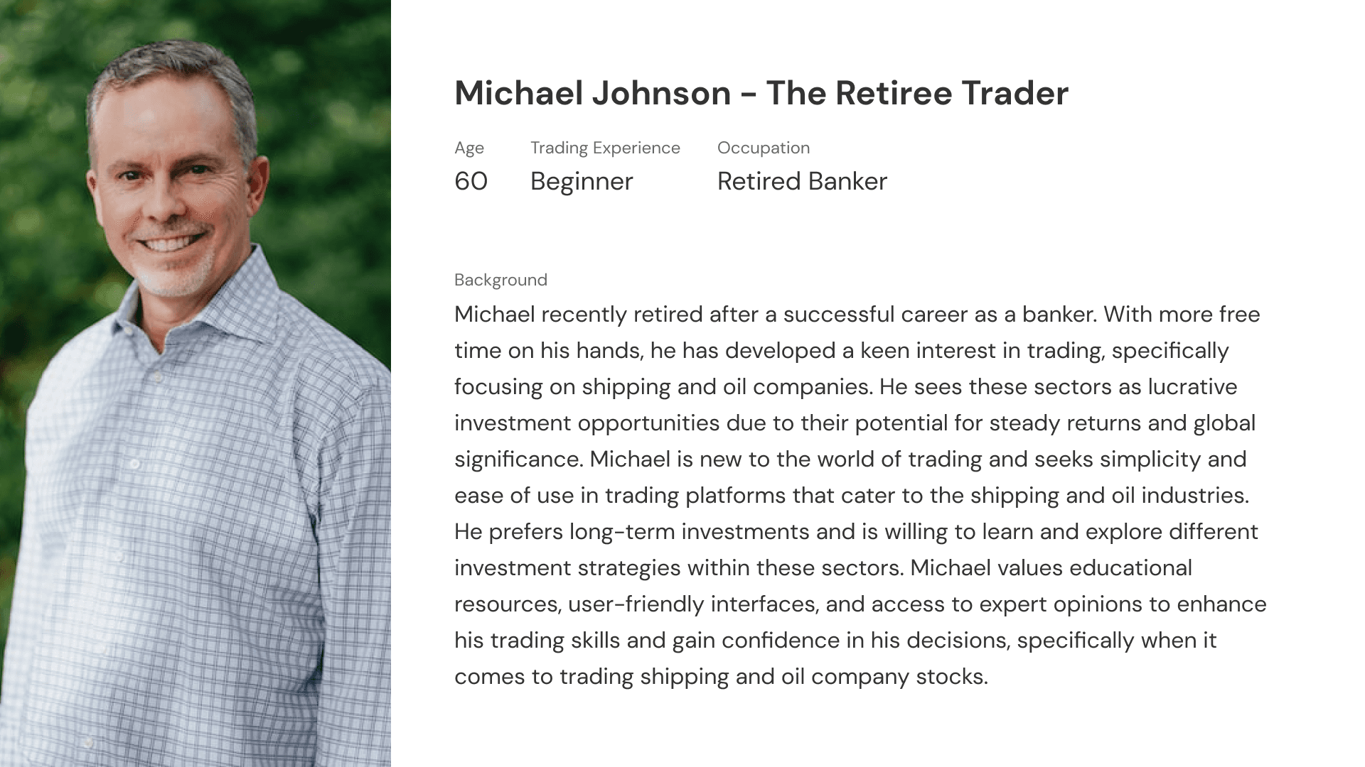 Created detailed user personas to better understand our audience, which primarily included investors, traders, and analysts in the maritime and commodity industries.