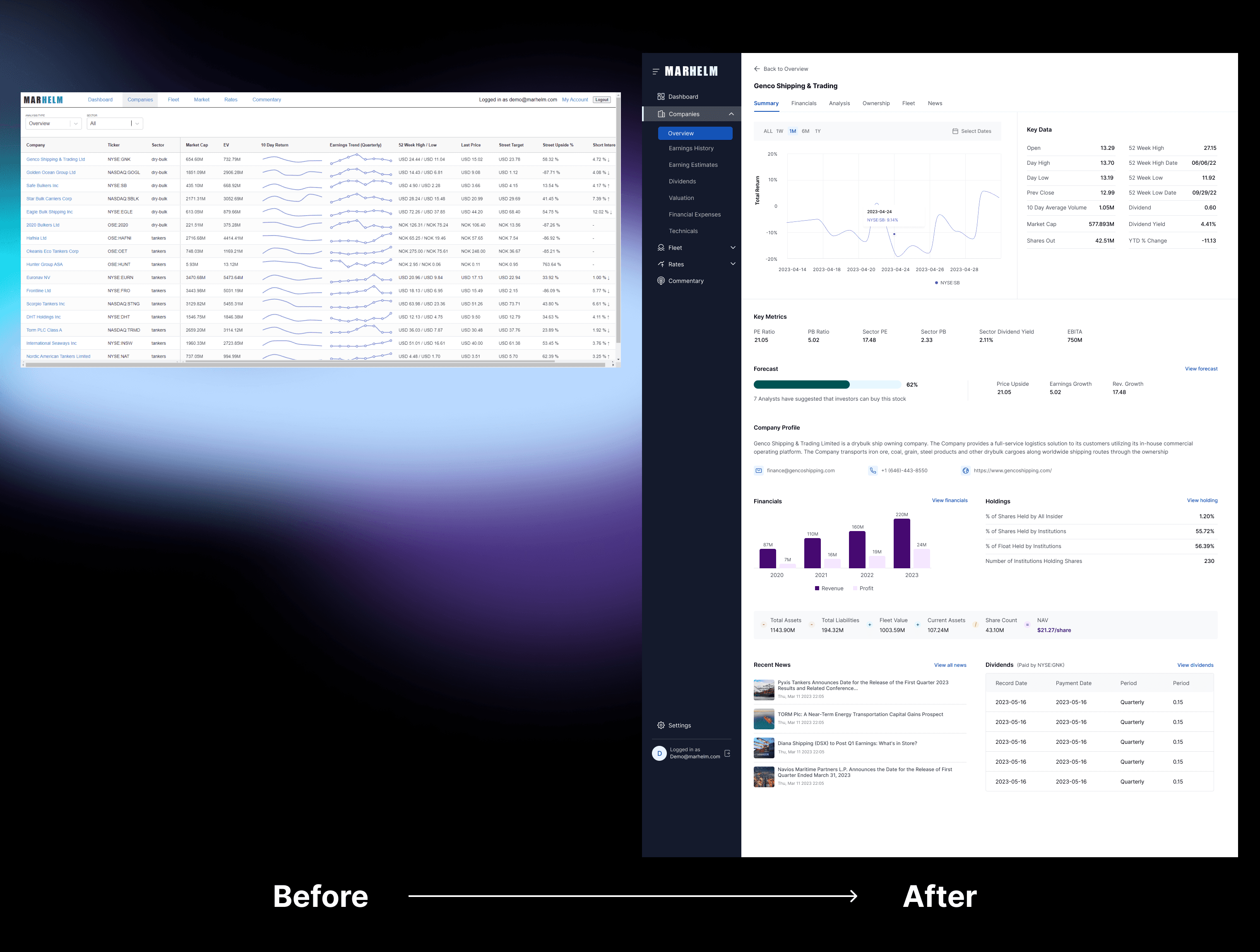 The goal was to visually differentiate Marhelm from competitors while aligning the design with the needs of its investor-centric audience.