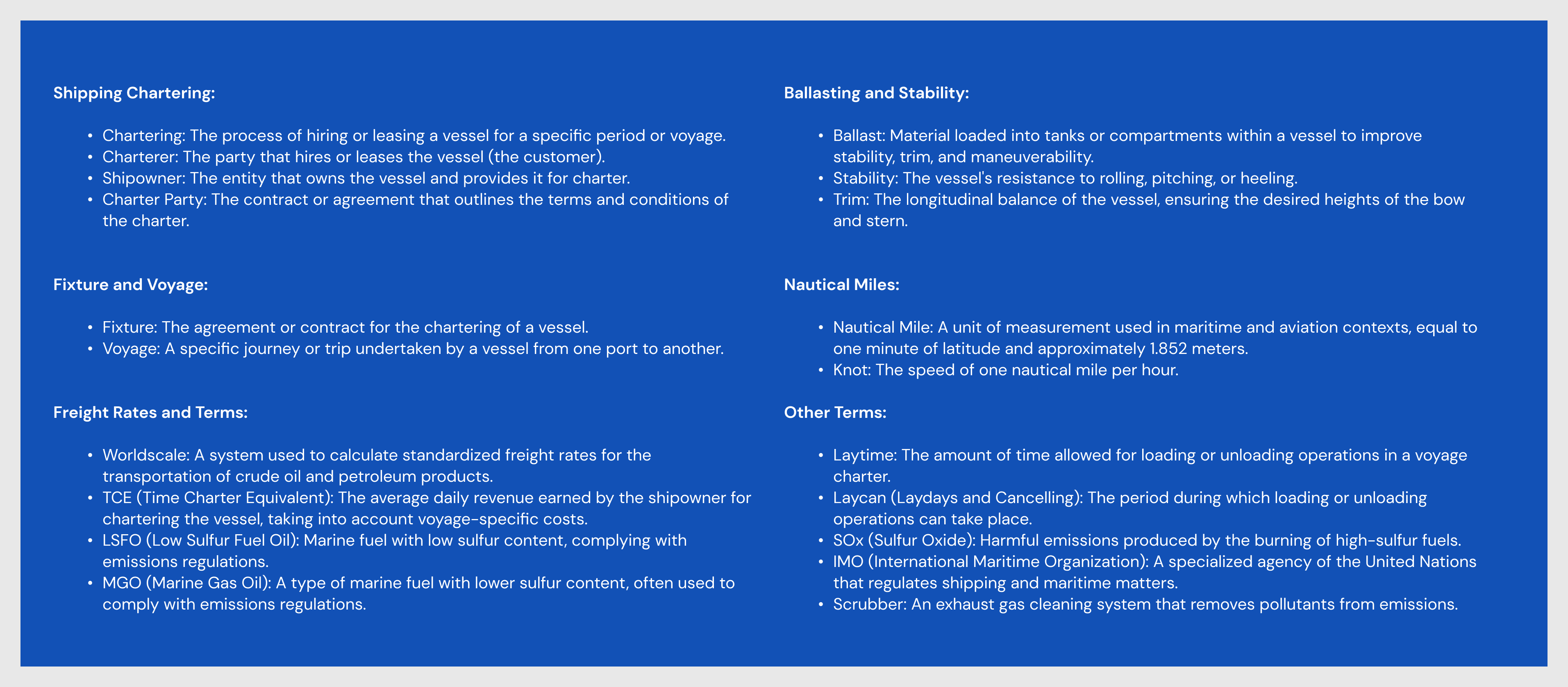 Laytime, Laycan, etc.