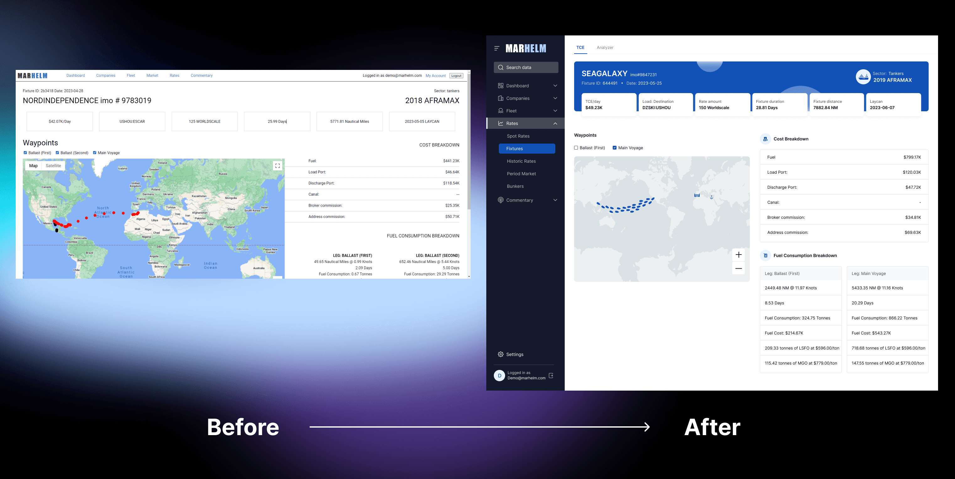 Ensuring that key data points (e.g., shipping fixtures, freight rates) were prominently displayed