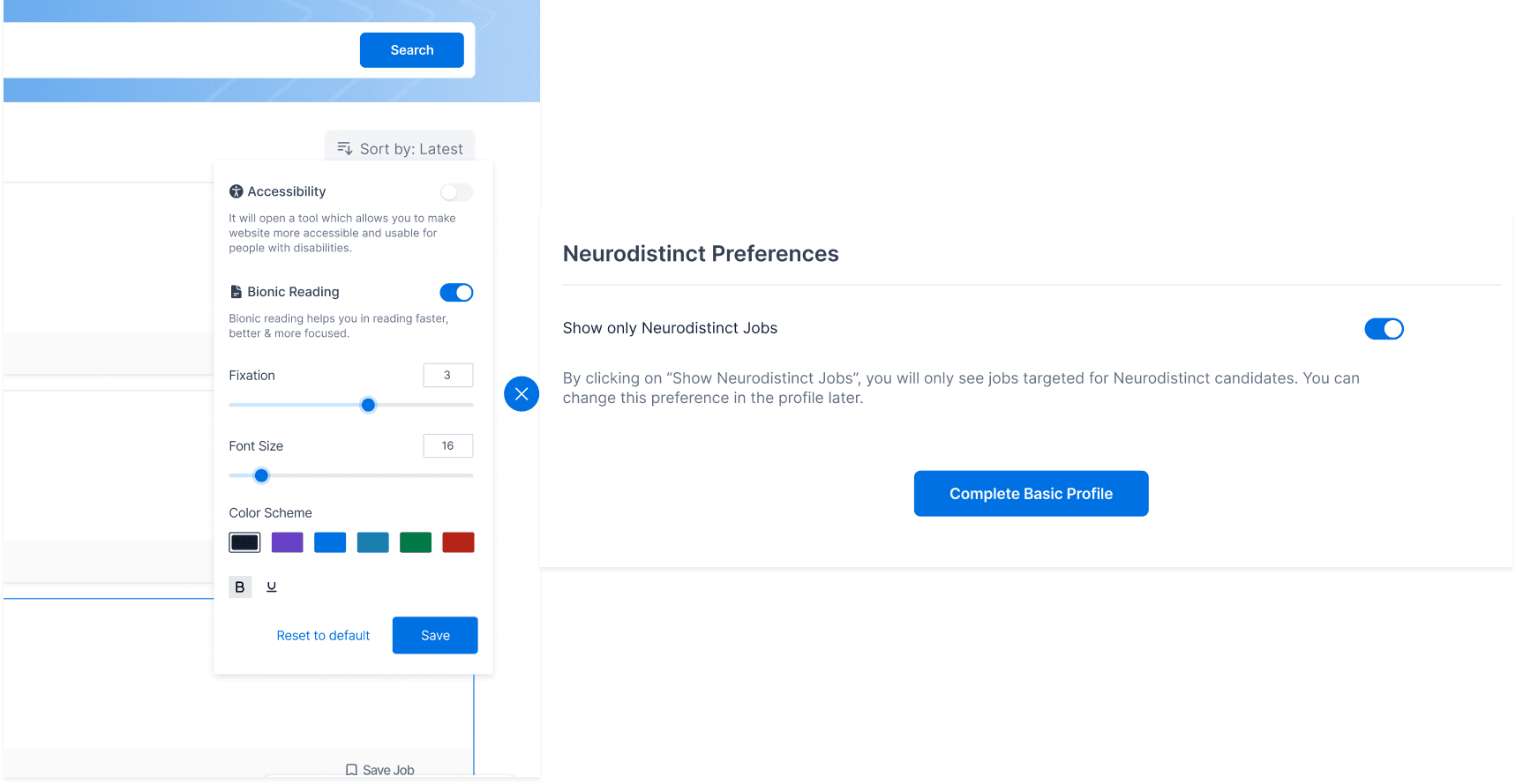 We designed specific features for neurodiverse users, ensuring the platform was accessible for a broader audience. This included: